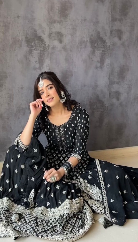 Designer Long Top Black Lehenga Choli For Women Indian Etsy Uk