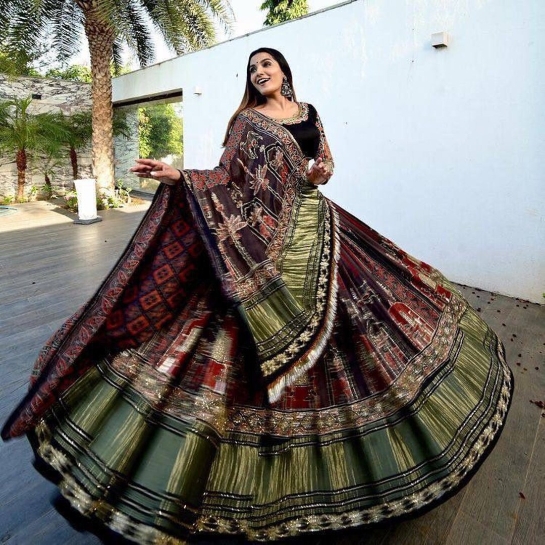 Navratri Special Black Lehenga Choli With Printed Butter Silk Etsy Uk