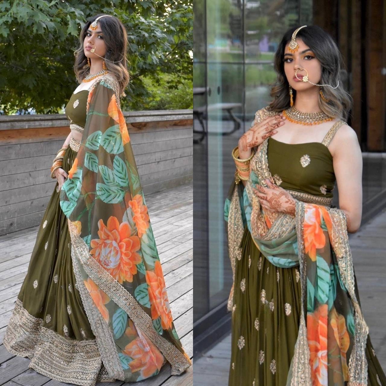 Mehndi Green Floral Wear Designer Georgette Lehenga Choli With Etsy Uk