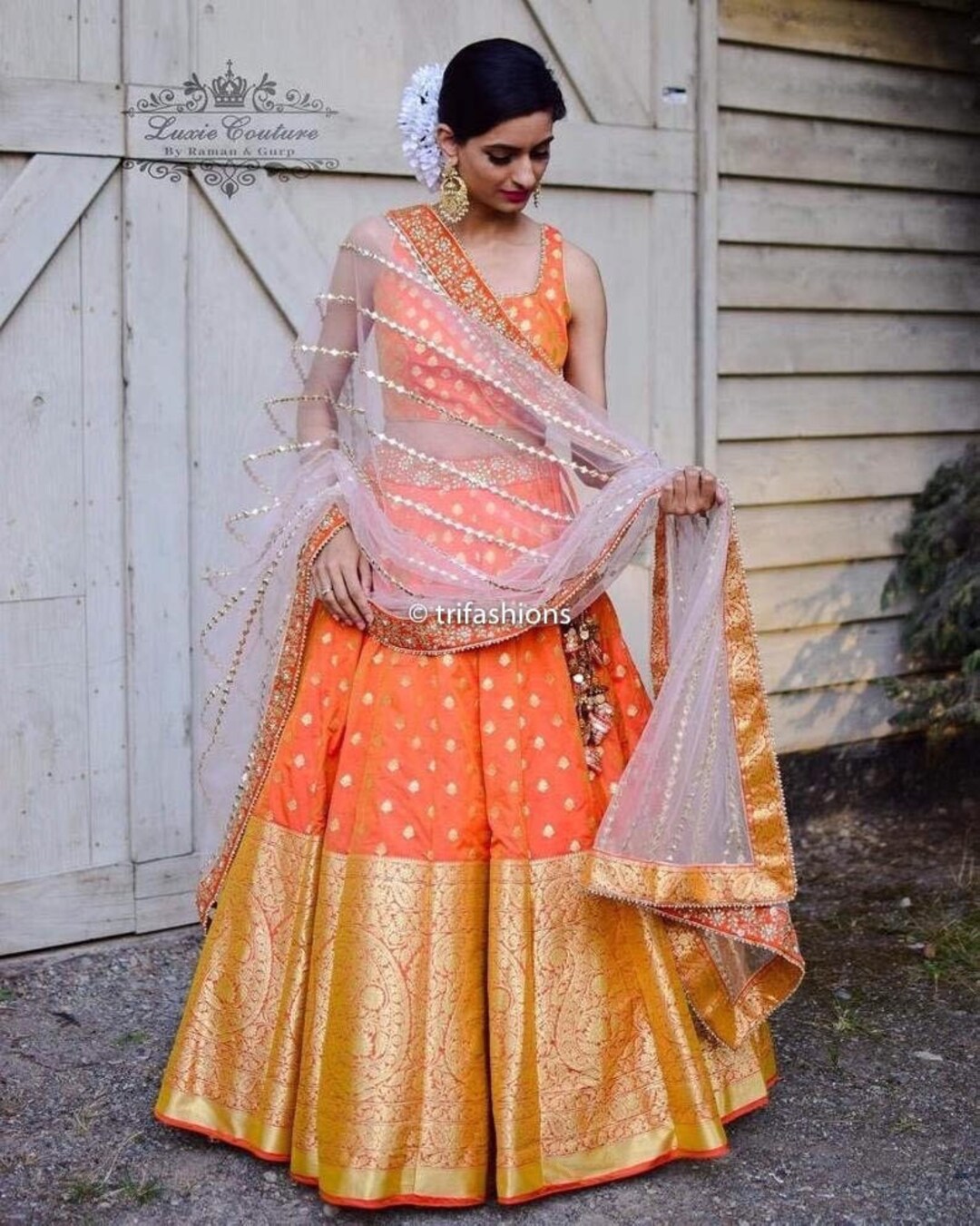 Orange Pure Banarasi Lehenga Choli Dupatta Indian Pakistani Etsy Uk